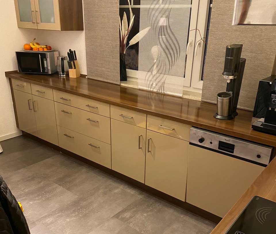 Wir verpassen deiner Küche oder deinem Esstisch einen neuen Look. Spare hohe Kosten für Neuanschaffung oder Restaurierung.